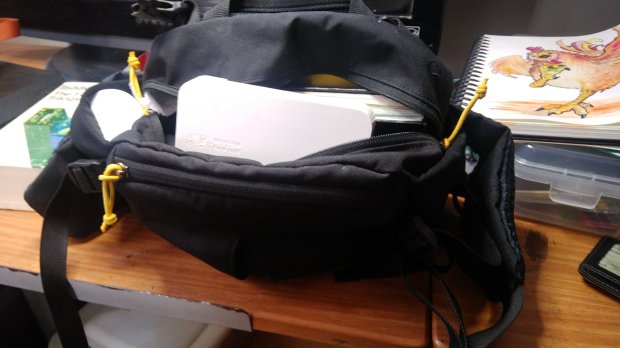 For my plein aire sketching kit, I am trying to fit everything into a small hip pack. This way I can hike without being obstructed. Having a small space means you have to get creative.