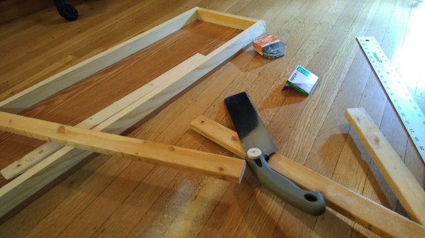 At first I tried it with 2×4s, but it was way too much work. I ended up using wood from the easels I made a few years ago.